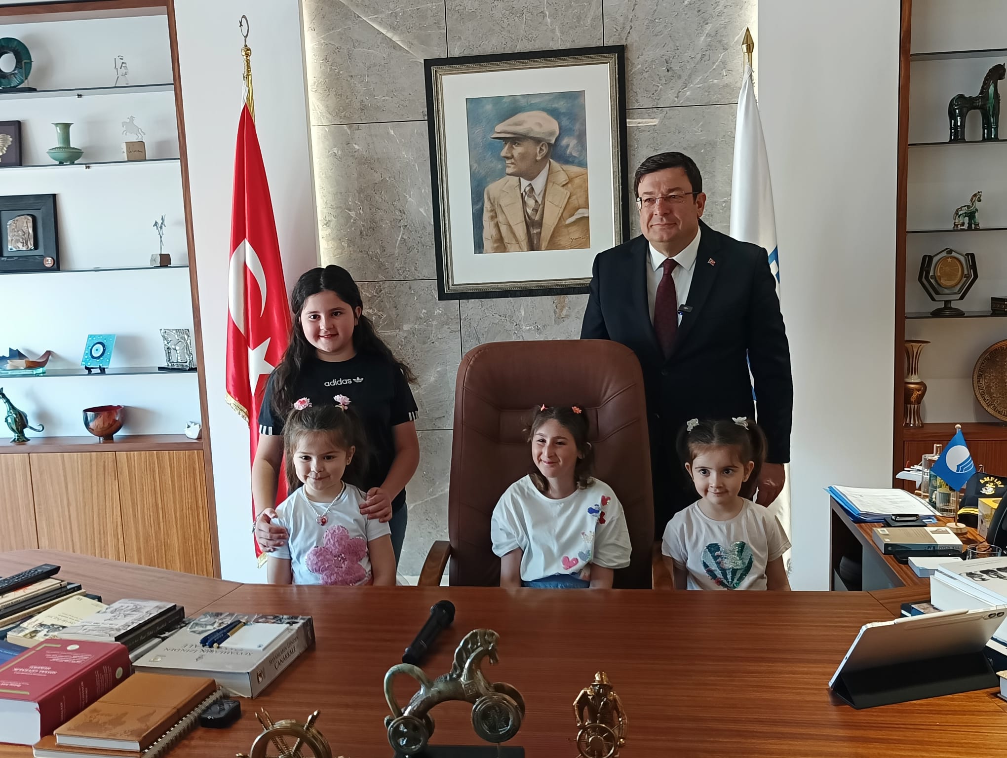 Güneş Uyanık’ın başkanlık koltuğundaki neşeli tavırları ve kardeşleriyle paylaştığı bu tarihi an, Çanakkale’de 23 Nisan kutlamalarının en unutulmaz kareleri arasındaki yerini aldı.