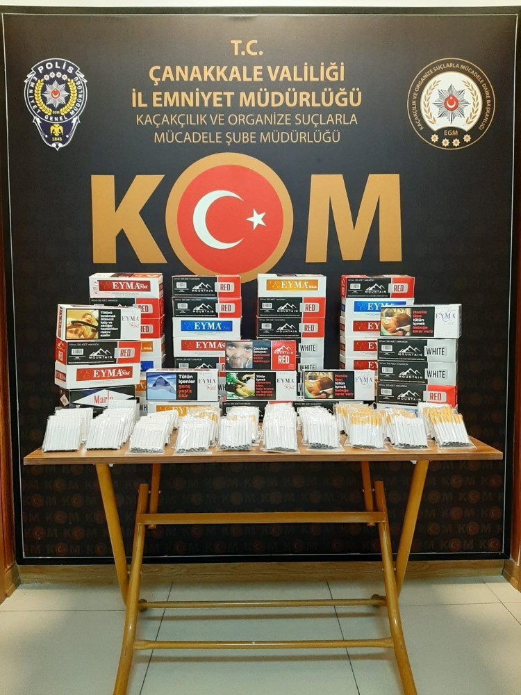 Kaçakçılık ve Organize Suçlarla Mücadele Şube Müdürlüğü, Çanakkale İl Merkezinde yapmış olduğu çalışmalarda; İ.G. isimli şahsın işyeri araması neticesinde; 11720 adet (dal) doldurma sigara bulundu. Bulunan doldurma sigaralara el kondu. Şüpheli şahıs İ.G. alınan ifadesinin ardından serbest bırakıldı.