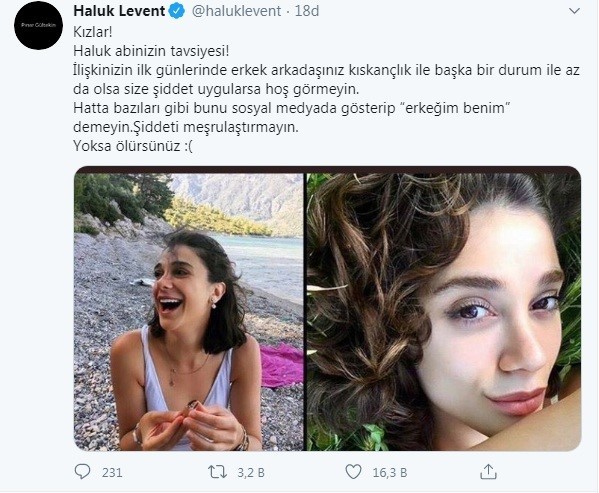 Kızlar! Haluk abinizin tavsiyesi! İlişkinizin ilk günlerinde erkek arkadaşınız kıskançlık ile başka bir durum ile az da olsa size şiddet uygularsa hoş görmeyin. Hatta bazıları gibi bunu sosyal medyada gösterip “erkeğim benim” demeyin. Şiddeti meşrulaştırmayın. Yoksa ölürsünüz :(