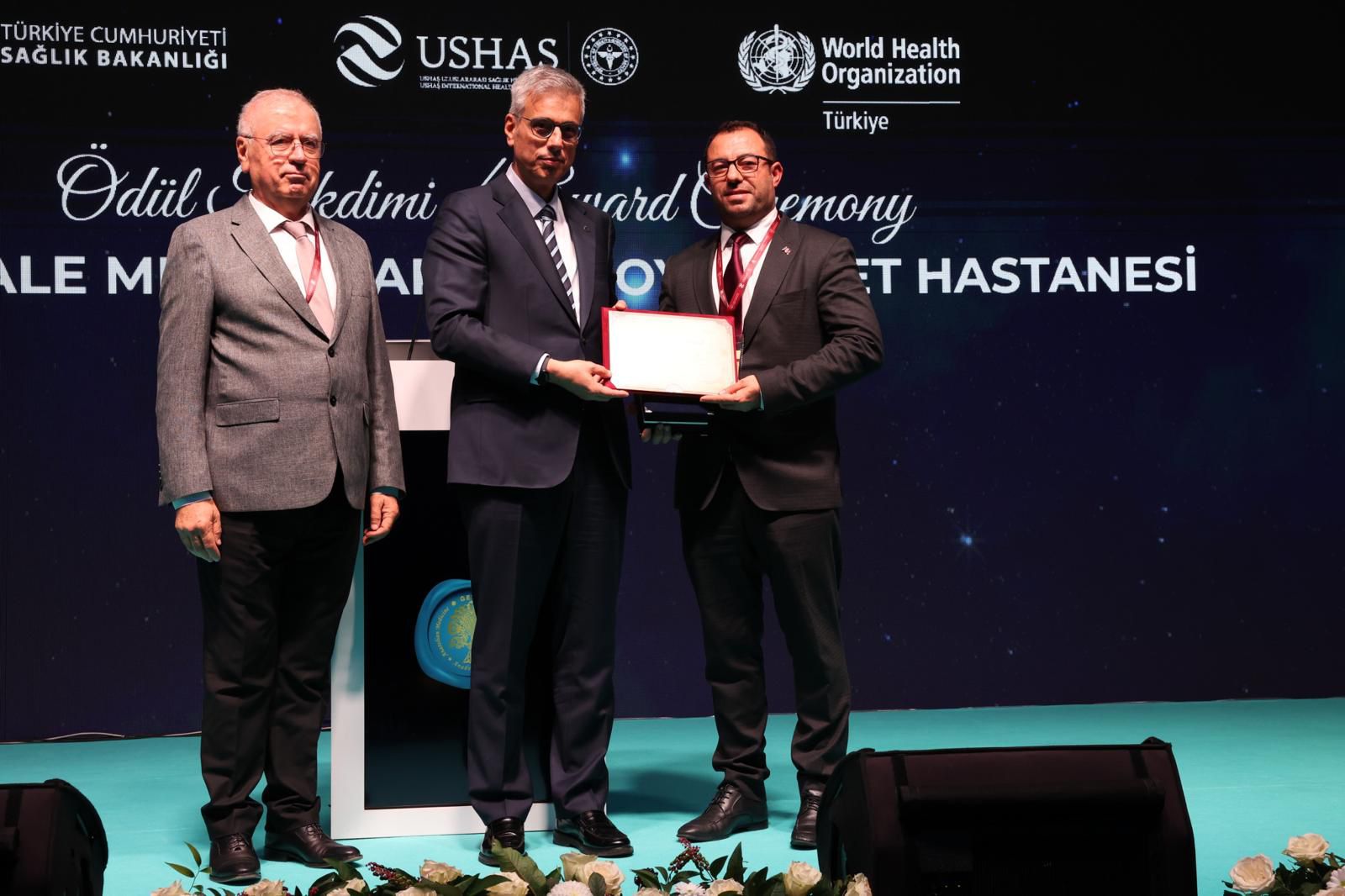 Sağlık Bakanlığı ve Uluslararası Sağlık Hizmetleri A.Ş. (USHAŞ) organizasyonuyla, Dünya Sağlık Örgütü (DSÖ) iş birliğinde bu yıl üçüncüsü düzenlenen Geleneksel ve Tamamlayıcı Tıp (GETAT) Kongresi, 3-5 Ekim 2025 tarihleri arasında İstanbul Lütfi Kırdar Kongre Merkezinde gerçekleştirildi. “Sağlıklı Türkiye Yüzyılı’nda Bütüncül Tıp” temasıyla düzenlenen kongre, Cumhurbaşkanlığı himayelerinde yapıldı ve 31 ülkeden 1.700 katılımcıyı bir araya getirdi. Kongrede, ülke genelinde faaliyet gösteren 84 GETAT Uygulama Merkezi ve 2.160 uygulama ünitesi arasından yapılan değerlendirme sonucunda Çanakkale Mehmet Akif Ersoy Devlet Hastanesi Türkiye’nin en başarılı ilk 10 hastanesi arasına girmeyi başararak büyük bir gurur yaşattı. Bu önemli başarı, Çanakkale merkez Devlet hastanesinin geleneksel ve tamamlayıcı tıp alanındaki etkinliğini hem de bilimsel temelli hizmet anlayışını bir kez daha gözler önüne serdi. Başarısı dolayısıyla Çanakkale Mehmet Akif Ersoy Devlet Hastanesi Başhekim Op. Dr. Hasan Keser ve GETAT Ünitesi Sorumlu Hekimi Uz. Dr. Azem Ülkü, Sağlık Bakanı Prof. Dr. Kemal Memişoğlu tarafından plaket ve teşekkür belgesiyle ödüllendirildi.
